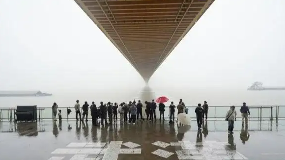 武汉杨泗港长江大桥再现“雨帘瀑布”